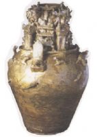 此罐为随葬明器.顶部堆贴有楼阙,鸟兽,肩部和腹部堆贴龟,狗,鹿等并刻画有龙纹.