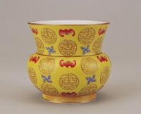 图片名称: 黄地红蝠金彩团“寿”字渣斗