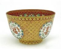 图片名称: 黄地红彩开光“福禄寿喜”碗