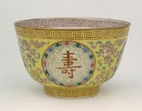 图片名称: 黄地粉彩开光“万寿无疆”碗