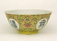 图片名称: 黄地粉彩勾莲开光“万寿无疆”碗