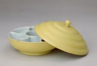 此盒胎体略厚,釉面略显不匀,黄釉淡雅宜人。