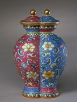 图片名称: 胭脂红、蓝地轧道珐琅彩折枝花纹合欢瓶