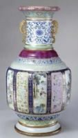 从烧造工艺上看,青花与仿官釉、仿汝釉、仿哥釉、窑变釉、粉青釉、霁蓝釉等均属高温釉、彩,需先焙烧。而粉彩、珐琅彩、金彩及松石绿釉等均属低温釉彩,需后焙烧。如此复杂的工艺只有在全面掌握各种釉、彩性能的情况下才能顺利完成。