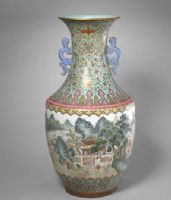 图片名称: 绿地粉彩婴戏纹双螭耳撇口瓶