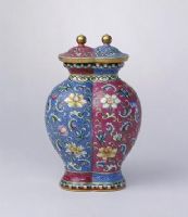 此瓶设计精巧,造型秀美,在轧道色地上绘花卉图案有铜胎画珐琅之效果。