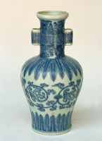 该器青花发色、釉面、纹饰及造型皆仿明宣德时期的青花贯耳瓶,很接近真器,以后各朝也有此器形。