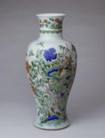 此瓶造型端庄古朴,构图疏密有致,纹饰画工精细,用色考究,所绘内容寓意吉祥。