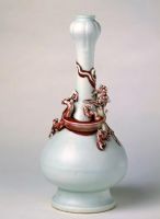 图片名称: 白釉塑贴红蟠螭纹蒜头瓶