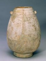 图片名称: 白陶雕刻饕餮纹双耳壶