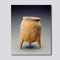 首都博物馆藏。泥质红陶。折唇,短颈,深腹,圜底,三锥足。通体拍印绳纹。为燕国文化的典型陶器。