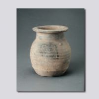 首都博物馆藏。泥质灰陶。折沿,方唇,束颈,溜肩,鼓腹,平底。肩部刻划三个字。外壁有轮制痕迹,胎体较为粗糙。