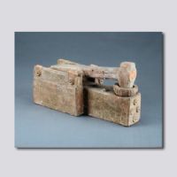 首都博物馆藏。明器。施低温绿釉,底座后端(即人操作处)的四角,各有一向上的支柱残痕,推测支柱上面还应有一扶手。碓为稻谷脱壳工具,大约发明于西汉,使用时踏碓人用足踏下杠杆将碓举起来,利用重力作用为稻谷脱壳。