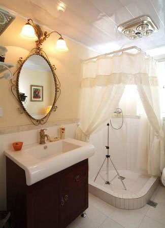 浴室的浴柜家具虽然尺寸不大,但是却起了非常之大的作用。因为在小小的浴室空间里可以将常用的琐碎之物比如洗面乳、牙刷杯、剃须刀等都巧妙地隐藏在柜子里面,同时也可以将其他使用周期稍长的洗涤清洁用品整齐地收藏在面盆下面的小柜中。而浴室的浴镜则可以选择在墙上镶嵌式的,这样很大程度的节省了空间,又时尚美观。