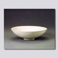首都博物馆藏。敞口,弧腹,浅圈足。内外施白釉,口沿无釉。碗内刻划萱草纹,刻纹流畅而舒展。釉色白中微泛黄,釉面有垂流痕迹。胎质洁白细腻。定窑始烧于唐,到宋代发展为一代名窑。以烧白瓷为主兼烧黑釉、酱釉、绿釉等。白釉器以刻花、划花、印花为主要的装饰工艺。