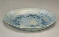 说 明: 盘较浅,化式口,白釉泛青。胎替轻薄坚硬,青花色泽淡雅。