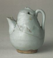 说 明: 器身施较厚的青白色釉,胎色白,底部不施釉,露出火石红色.