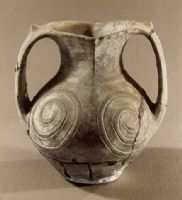 说 明: 泥质灰陶。方口折沿,方径内收,腹圆鼓,平底。造型奇特,装饰美观。
