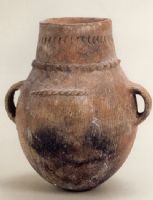说 明: 砂质红陶。小口、长颈外侈,深腹略圆鼓。满饰竖绳纹。