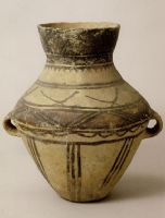 说 明: 泥质土黄陶。鸟纹笔法简练,姿态生动。