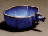 说 明: 酱色胎,胎质紧密。器内外施天蓝釉。造型特殊,制作精巧。