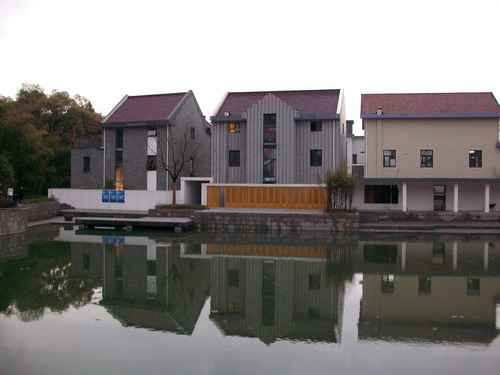 好奇心驱动下,赶紧催促工作人员带我们去参观了网易陶瓷的那两栋楼。到了之后一看,原来名字叫"网易兰亭陶瓷工作室",两栋很漂亮的小楼,周围的环境也很优美。这么漂亮的小楼租金贵不贵呢?据介绍,网易签了5年合同,前两年是免费使用,后三年的每平米日租金为6毛钱,真是便宜啊。下面是刘兴亮拍的几张照片: