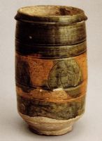 说 明: 整体造型呈筒式。陶胎较厚重,上白色化妆土。纹饰刻画简练。