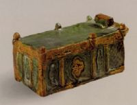 说 明: 红陶胎,上白色化妆土,施黄、绿两色。