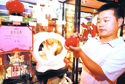 4月29日,2009年中国义乌文化产品交易博览会进入第二天,在2009年中国义乌文化产品交易博览会工艺美术作品评选中,德化陶瓷精品馆选送的《和谐》、《春风得意马蹄疾》、《鸡毛换糖》、《贵妃醉酒》等4件白瓷工艺美术作品分别获得金奖、银奖和铜奖。为此,德化陶瓷精品馆总经理陈济金开心地说,我们将以此次大面积获奖为动力,努力开发陶瓷工艺新产品,为义乌市场繁荣多作贡献。