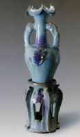 说 明: 造型别致,通体施天蓝色釉,配上紫红、蓝、褐等艳丽的彩斑,更显华贵。