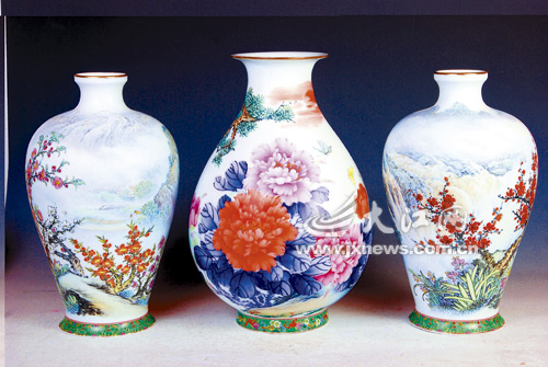 记者邱西颖报道:日前,由景德镇市陶瓷学院教授周国桢和中国工艺美术大师黄卖九共同设计,景德镇市名人陶瓷精品研制中心、深圳南山当代名人陶瓷馆担纲制作,为庆祝新中国成立60周年而精心创作的珍藏瓷《锦绣中华》正式问世。
