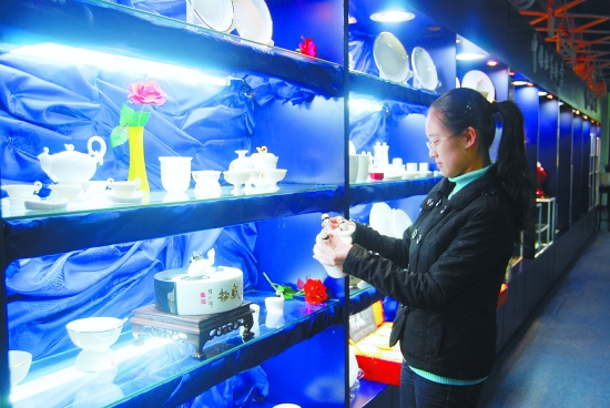 德化出台政策鼓励发展日用瓷、礼品瓷,帮助企业创新转型。图为消费者在选购德化日用瓷。