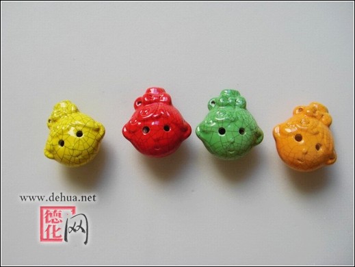 我们今天所说的陶笛就是这类带哨口的陶制吹奏乐器的泛称。陶笛由陶土用手工捏制成枪形、潜水艇形、扁形、球形等等,表面加施釉色或手绘图案,再经过高温烧制而成。而许多陶笛作者除了这些形状,也会创作各种造型的陶笛如三角形、圆柱形……最好的形状是球形或胖圆形,而扁平的形状所产生的声音也很独特。小小的笛子可发出天籁般晶莹剔透的音色,高音陶笛吹奏起来就如鸟儿鸣啭,中音陶笛圆润中和、空灵辽远,低音陶笛浑圆醇厚、古雅深沉。