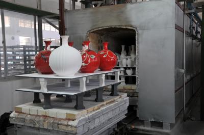 一批施釉后的半成品正在被推入轨道窑