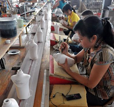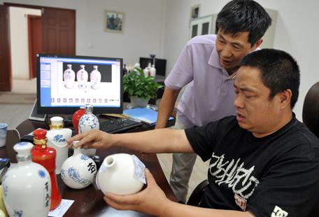 景德镇酒瓶创意工厂的员工在设计新酒瓶
