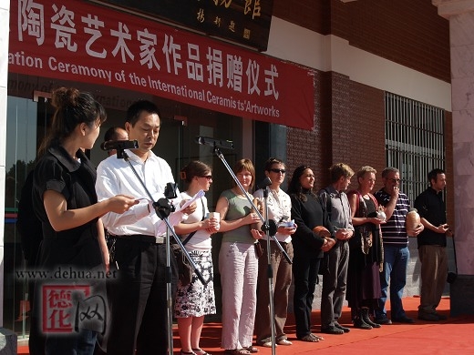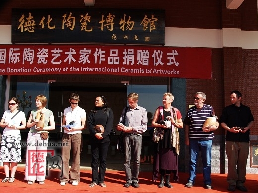 10月22日上午,参加第一届“德化月记窑国际当代陶艺家柴烧研讨会”,来自澳大利亚、荷兰、芬兰、立陶宛、爱沙尼亚、印度、美国、哈萨克斯坦的八位陶瓷艺术家向“中国瓷都”福建德化的陶瓷博物馆捐献了出各自的代表作品。博物馆同时向八位捐献者颁发收藏证书,该八件陶瓷艺术作品正式成为德化陶瓷博物馆的馆藏之宝。