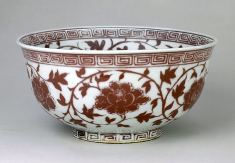 中国古代陶瓷文化作品之釉里红缠枝牡丹纹碗