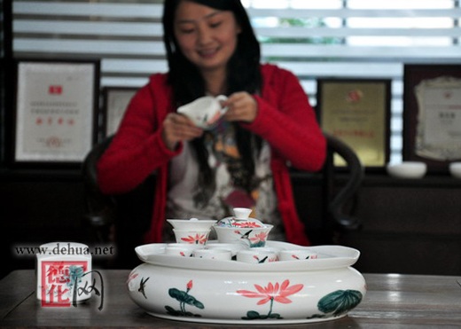 记者看到,“岁寒四君子”的梅、兰、竹、菊成为德化瓷器创作的新题材。一套普通的茶具,画上傲霜斗雪的梅花,便具有了“梅花欢喜满天雪,留取清白在人间”的隽永意境,在休息喝茶之中起到潜移默化、润物无声的效果。孤标亮节的菊花、刚直豪迈的青松与德化陶瓷相结合,成了中华民族不畏强权、不屈不挠精神的体现。高雅有节的绿竹,激励着党员干部要像竹子一样虚怀若谷、刚劲有节。绘有“出污泥而不染,濯清涟而不妖”的荷花图案的杯子,配以“清茶甘甜可口,廉气清香润心”的格言警句,成为党员干部作为激励自己洁身自好的座右铭。