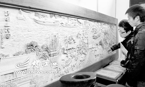 来自安义县的邹双印、邹双勇兄弟,他们的板雕技艺已载入江西省非物质文化遗产名录。这回在热闹的大厅中见到他们时,兄弟俩兴奋地告诉记者,这项技艺已申报国家非物质文化遗产名录。我们衷心祝愿他们能申报成功。此次他们带来的板雕书法作品,内容上有了新的变化,体现了他们不断求新的意识。以往他们偏爱摹刻《兰亭序》、《寒食帖》等较早的传统书法经典,目前主攻方向变为摹刻毛主席诗词、八大山人书法作品等。他们说也要配合红博会打好“红色文化”和“地方特色”两张牌。