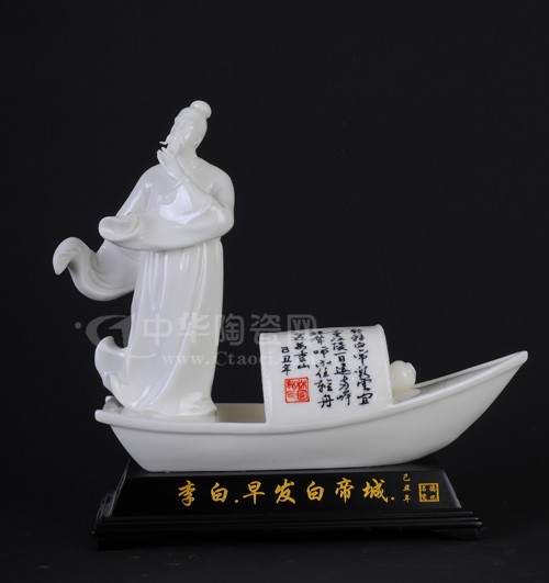 李白立于船尾绥须微抬头,似在吟诗,似在观赏远路美丽风景,衣服随风飘扬,神态形象生动,逼真传神。作品在在传统技法的基础上结合现代理念,线条简洁、流畅,瓷质洁白,莹润透亮,令人爱不释手,在福建省第五届福建省工艺美术精品“争艳怀”大赛中荣获优秀奖。(小侠、小米)