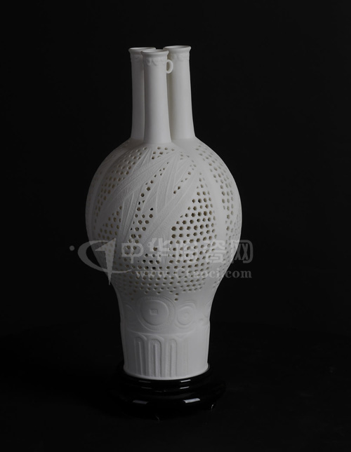 通花艺术瓶是“开心、欢乐”的象征,“爱与美”的结合,寓意万事顺通、和谐如意。《三多三联乐团圆》是陈明华精心创作的通花瓶的其中一个,融塑、捏、刻、雕、通等手法于一体,技法精致娴熟,一笔一划、一雕一刻无不彰显女性独有的灵秀与细腻。作品巧夺天工,精美雅致,富含博大高深的中国文化及传统工艺元素,充分发挥了“中国白”温润细腻、洁白透明的材质特点,极具欣赏与收藏价值。(小侠、小米)