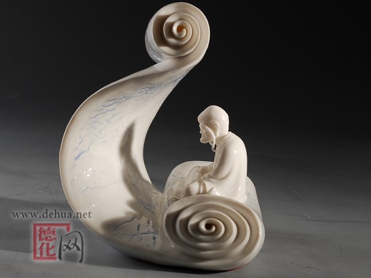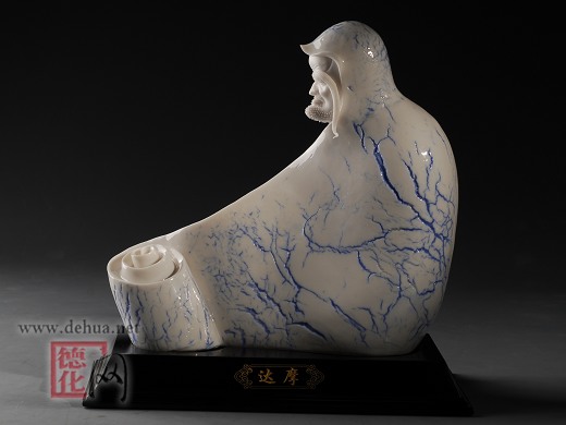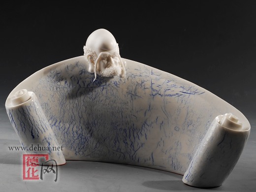该系列作品首创以中国特有的卷书为主体,采用研究所最新研制成功的窑变青花瓷为背景,一道道可遇不可求的窑变裂纹,象征着“大千世界千变万化,功到自然成”的禅宗思想。作品立意高远,构思新颖,精雕细琢,工艺精湛,人书合一,妙趣天成,创造性的表现了“博大精深,源远流长”的佛教文化内涵。
