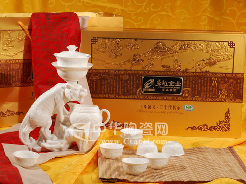 卓越陶瓷一直坚持走高品质、高要求的路线,以“铸造品牌、务实质量、科技创新、诚信合作”为经营理念;以“掌握市场动态、满足顾客要求,持续改进管理,打造中国茶具名牌”为质量方针,专业生产象牙白各种高档茶具。其产品都是必经福建省德化县恒越陶瓷研究所工程师、工艺师精心研究设计,精选上乘高岭瓷土,做工考究精细,经高温1350度烧成后瓷质细腻、如脂如玉、晶莹剔透、高贵典雅。其白度、光泽度、平整度均达到最佳状态,使产品的手感、口感、眼观与众不同,并经中国检验认证集团福建有限公司检验,其含铅、镉、吸水率检验结果均远低于国际标准。是现代家庭、高级酒店、机关单位、企业家首选日用陶瓷的佳品。