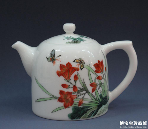 江月光古彩《兰在幽林亦自芳》壶 本图片来源自博宝宝珍商城