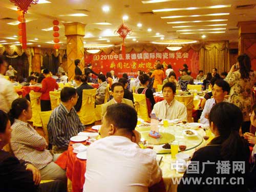 今天(17日)晚上,江西省“2010景德镇国际陶瓷博览会”新闻媒体记者欢迎酒会在景德镇新昌江大酒店隆重举行。中共景德镇市委常委、宣传部长马玉玲,景德镇市人民政府卢正大副市长等相关领导同志出席了欢迎酒会。