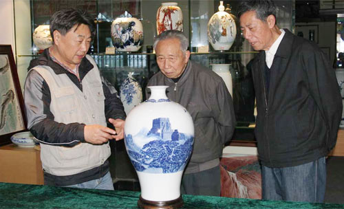 资料介绍,2008年9月,在由世界杰出华商协会、中国青少年发展基金会主办,中国宋庆龄基金会、中央电视台书画频道协办的拍卖会上,一件普通编号的“永久和平”国礼青花瓷由拍卖师报出38000元起拍价后,各界名流争先竞价,竞价从5万元、10万元、20万元、30万元一路走高,最后以60万被0029号买家迅速收入囊中,一举创下2008年当代青花陶瓷的拍卖记录。记者在现场采访了前来参加拍卖活动的、拥有二十多年陶瓷收藏投资经验的京城名家郁华先生,他表示:瓷坛三位青花泰斗破天荒的合作,这样的机会可以说是仅此一次,又是为纪念2008年举世盛会创作,具有特别重大的时代意义,加上瓷胎上有突破,青花瓷艺已达到了当今最高水准。