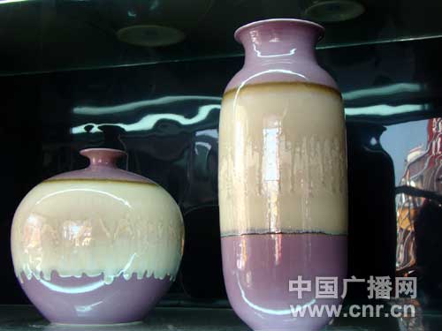 四年过去了,2010年,记者第三次参加景德镇国际陶瓷博览会,在闲暇之余再次来到了这家小店,店内展示的产品已霍然一新,不仅出现了不少新的造型别致的观赏瓶,而且器形、釉色看起来特别鲜艳和亮丽,经询问才得知,原来这是在以前结晶釉类型产品的基础上推出的宝石釉与窑变相结合的装饰类陶瓷新品。