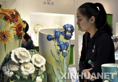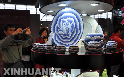 10月18日,2010年中国景德镇国际陶瓷博览会在江西景德镇开幕,来自全球30多个国家的参展企业展出了日用艺术瓷、工业陶瓷、电子陶瓷和建筑卫浴瓷等。(胡敦煌 摄)