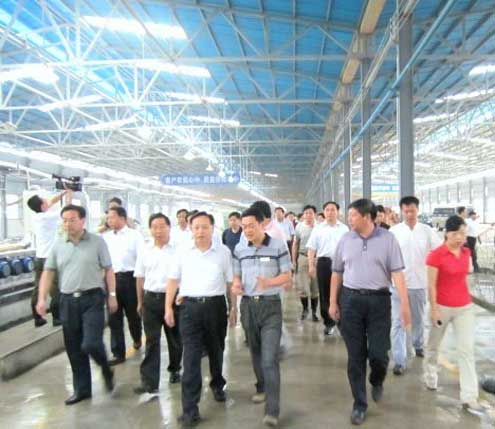 省委书记罗清泉(左四)、县委书记熊长江(左三)视察生产车间