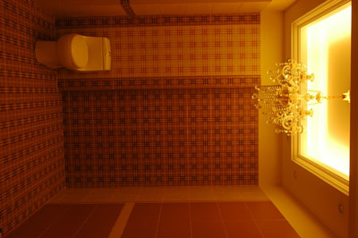 从踏入新展厅一瞬间,人们就轻易感受到展厅的巴洛克气息。绚丽的水晶灯,闪亮的瓷砖,在光与线流动中绽放奢华的姿态,却又能让人体会到一丝丝的浪漫主义。早在16世纪下半期在意大利诞生的巴洛克,经过近五百年的洗礼,仍被人们所推崇,广泛沿用于建筑、服装、家居装饰等。全新面貌的一楼展厅巧妙运用巴洛克经典元素,如吊灯、罗马立柱、壁炉、弧形橱窗、雕塑及油画,强调建筑绘画与雕塑以及室内环境等的综合性,突出浪漫与激情。展厅处处流露高贵典雅,辉煌奢华,将现代人居空间进行了很好地体现和创新。在300多平方米的空间里,多款产品陈列其中,通过巴洛克风格的烘托和营造,经典与现代完美的交融,赋予了产品丰富的文化内涵。